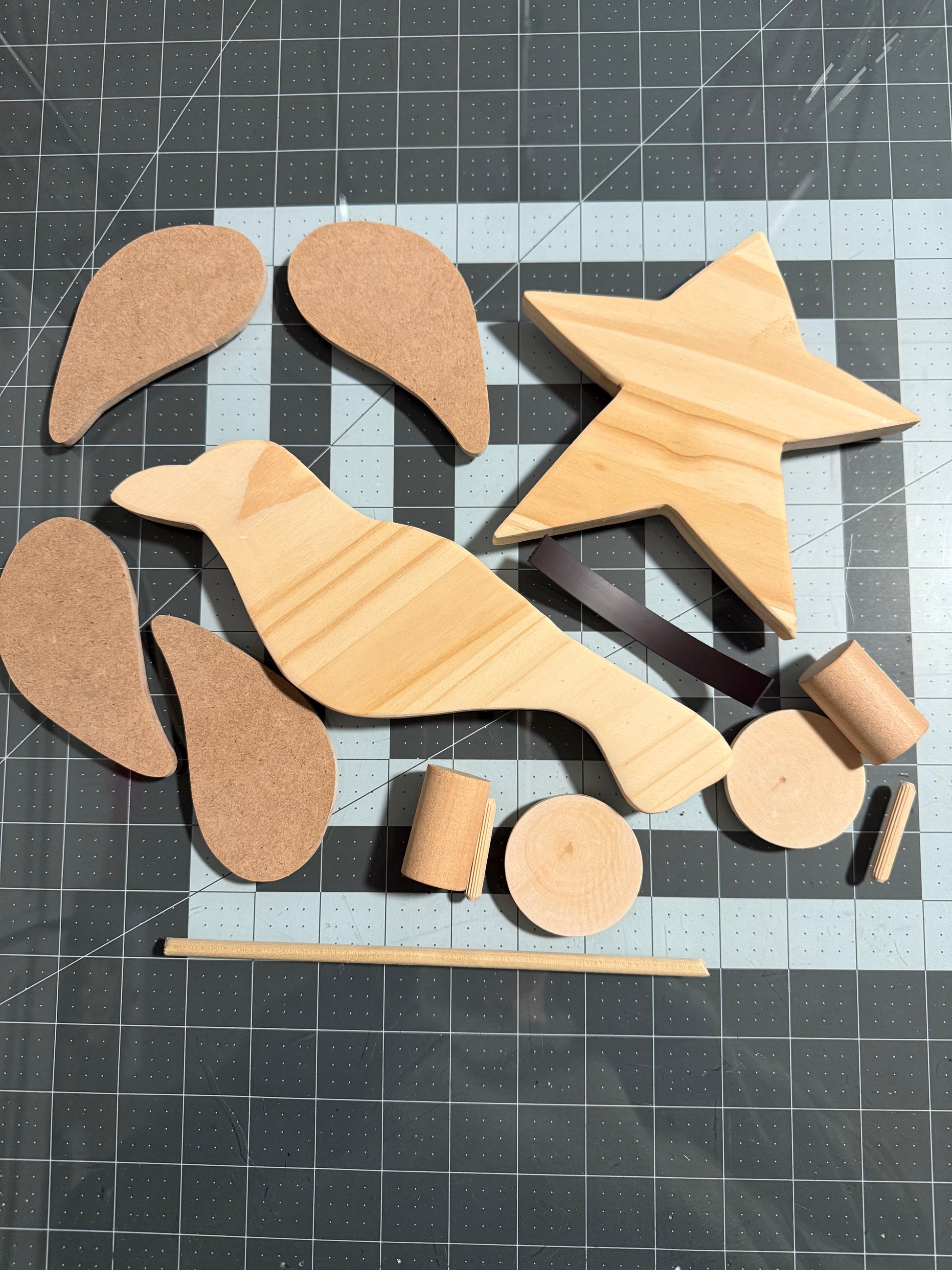 - 2 sets of wings made from MDF and a dash of magic (they attach with magnets so you can swap them for holidays, moods, or just because)